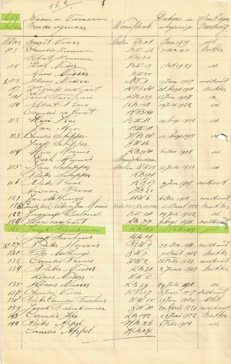 In de foto is aan de onderzijde van de boot de markering MK.125 te zien. Aan de hand van deze markering is te vinden van wie deze botter was, aangezien de registratiekaarten van Marker botters bewaard zijn gebleven in het Waterlands Archief. Het is mogelijk dat een van de mannen Jacob Peereboom is, geboren op 10 maart 1875. Hij staat namelijk op de vaartuigregistratie van 1917.