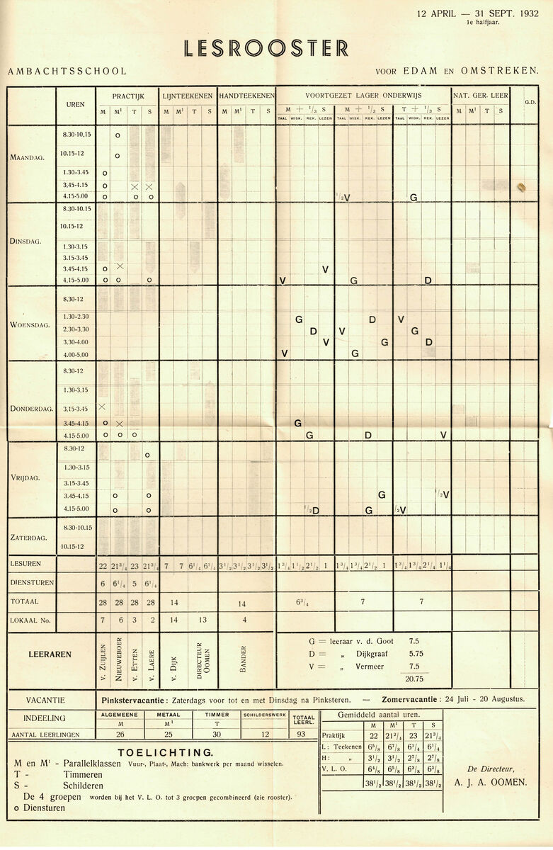 Lesrooster uit 1932